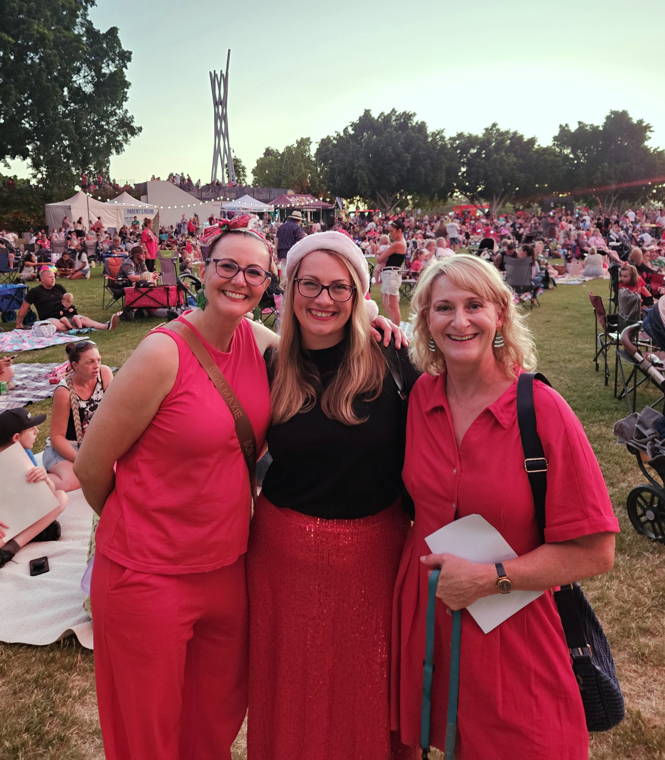 We also had two bookings for big outdoor community carols events. Unfortunately the North Lakes Christmas Carols were cancelled due to a lot of rain in the lead-up to the event, which prevented the required setup, but we made the most of our free time by having a get-together at Nat G's house! Thankfully, the weather was kind to us on the day of the Pine Rivers Christmas Carols, where we performed for thousands of attendees! It was our first time at this massive community carols event and we hope to return in future.