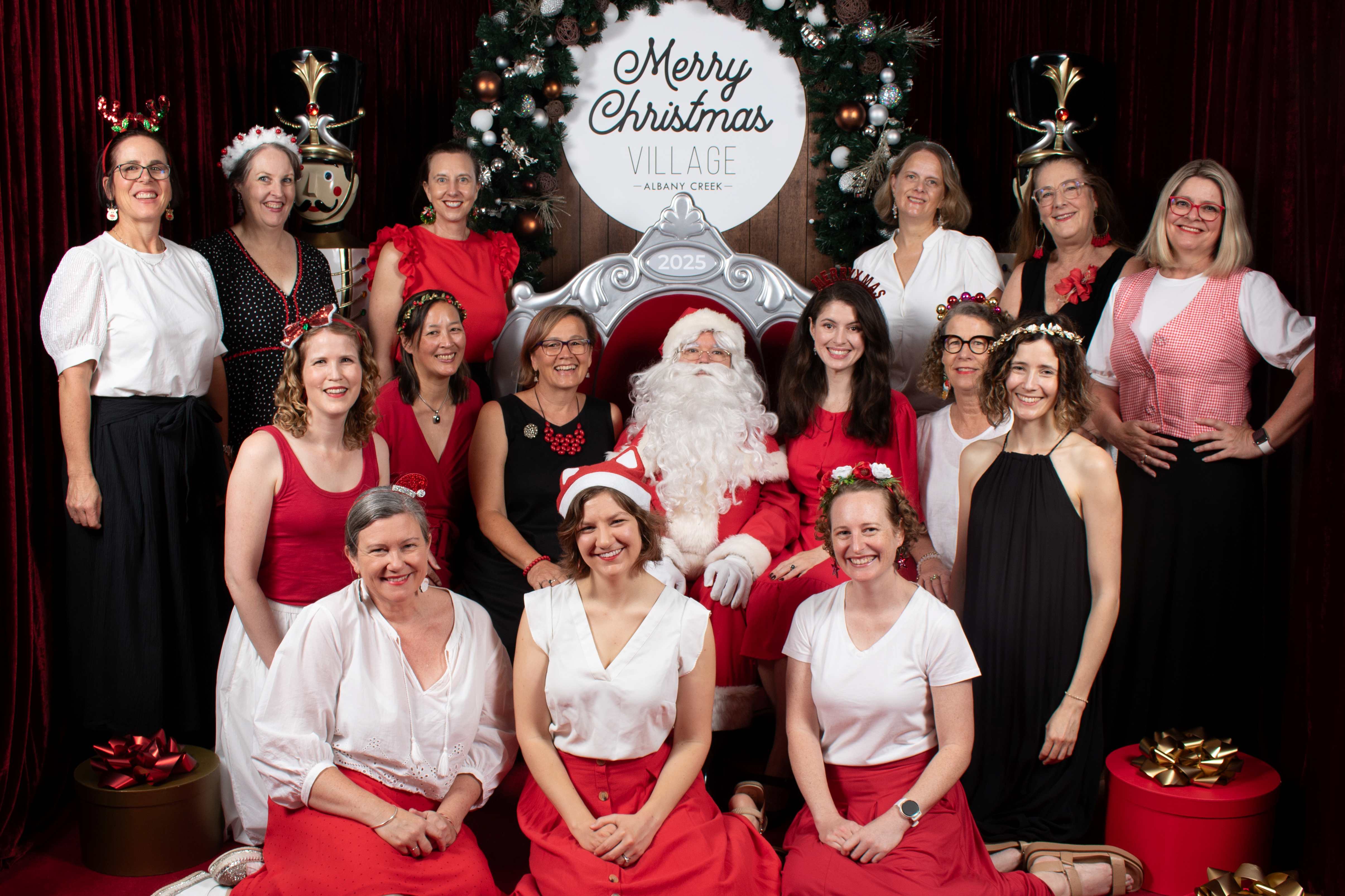 We then performed over three weekends at Albany Creek Village, singing for shoppers and centre staff - and Santa! We also completed our reasonably new annual tradition of getting a photo with Santa!